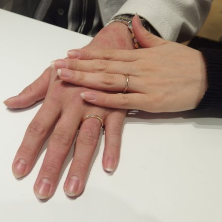 兵庫県神戸市からご来店、T 様 & M 様 / 細身のシンプルなデザインに等間隔でダイヤモンドを配したお洒落な結婚指輪をご納品
