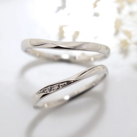 兵庫県西宮市からご来店、一 様 & 茜 様 / 光を反射する美しいフォルムにダイヤモンドの輝きと、男性リングは艶消し加工を加えたお洒落な結婚指輪をご納品