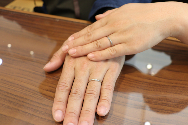 選んでいただいた指輪はお2人の優しい雰囲気にとても良くお似合いでした。