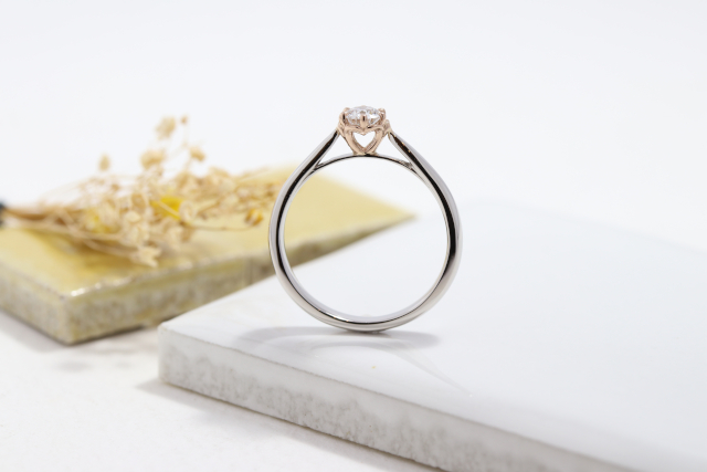指輪はプラチナで、石座はK18ピンクゴールドで制作をしたコンビネーションリングです。
