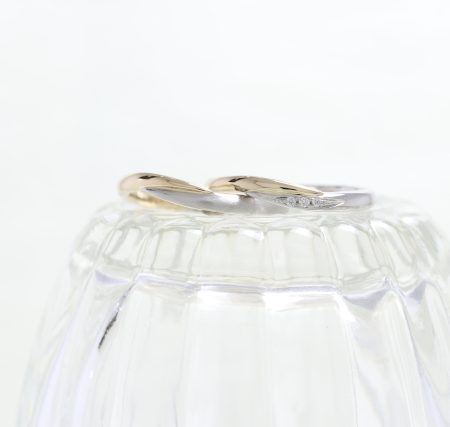 男性用の指輪は捻じれたフォルムがカジュアル感を出しファッションリングのような感覚で身に着けれるスーパーハードプラチナ製のマリッジルング(結婚指輪)。捻じれた金属が指輪に取り込まれた光を反射してあらゆる方向に反射にて輝いて存在感を出してくれます。女性用の指輪は緩やかなウェーブラインが美しく指にピッタリヒットしやすいデザインになっています。中央に留められたダイヤモンドが指を動かす度にさり気なく輝いてくれます。指輪の素材はTRESORのハードプラチナ製なので丈夫で頑丈な金属で創られたマリッジルング(結婚指輪)です。ストレートのエンゲージリング(婚約指輪)との重ね付けの相性の良いマリッジリング(結婚指輪)です。TRESORではセミオーダーで選ばれた指輪を自分好みにアレンジする事で世界に一つのオリジナルの指輪に仕上げる事も出来ます。