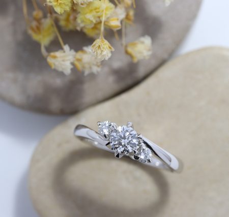 ストレートラインや曲線ラインのマリッジリング(結婚指輪)との重ね付けの相性の良いエンゲージリング(婚約指輪)です。
