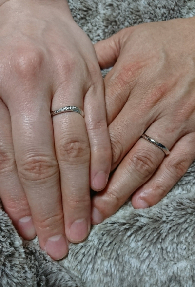 『神奈川県平塚市からご来店の誠一様 & 亜紀様』 流れるように留められたダイヤモンドが大人の魅力を放つマリッジリング(結婚指輪)をご納品