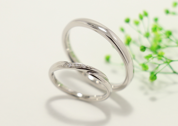 神戸市兵庫区からご来店下さいました。さり気なく輝くダイヤモンドの輝きが美しい細身の結婚指輪とシンプルな甲丸結婚指輪をご納品