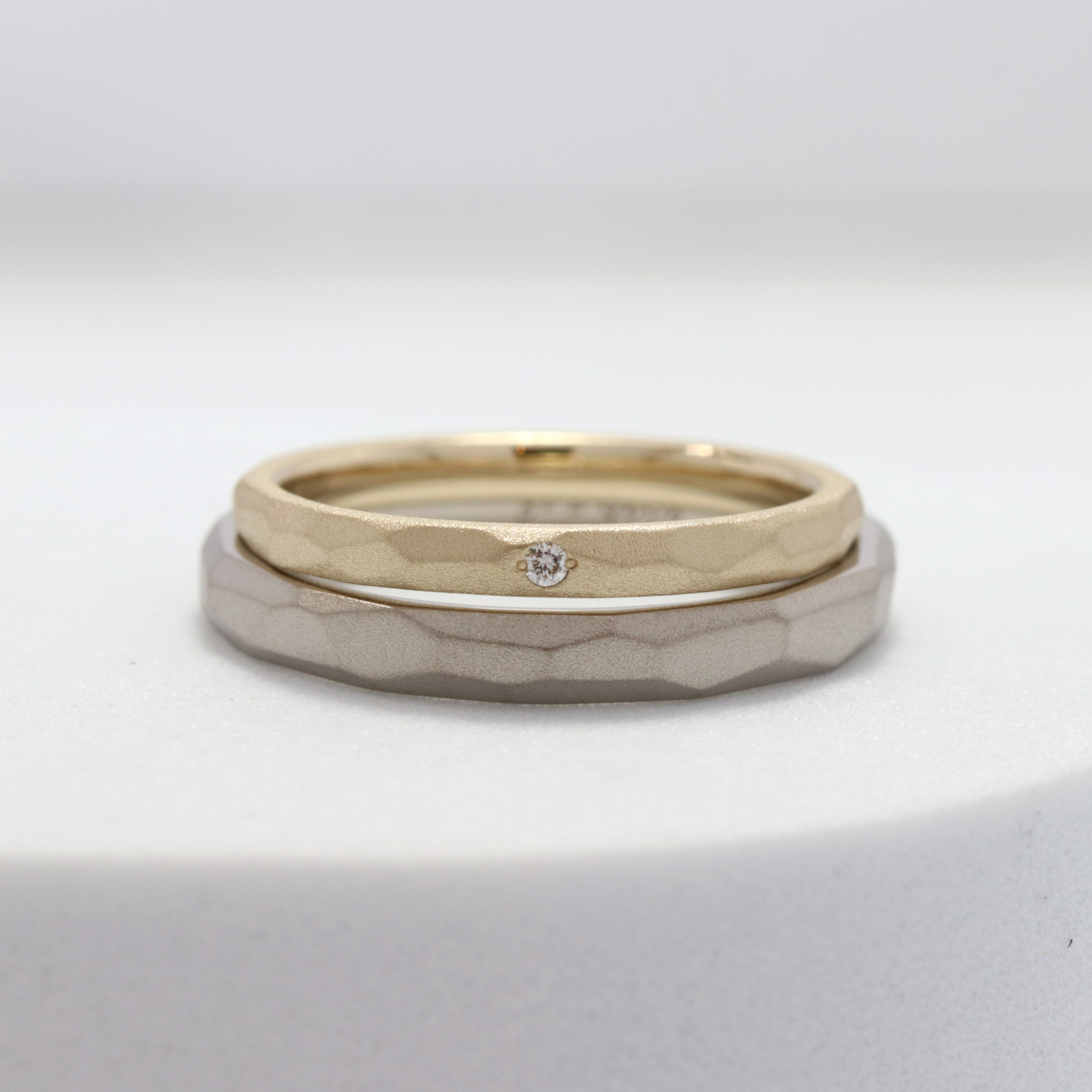 大地のように揺るぎない安定感と、ふたりを包み込むやさしさを指先に宿した結婚指輪。