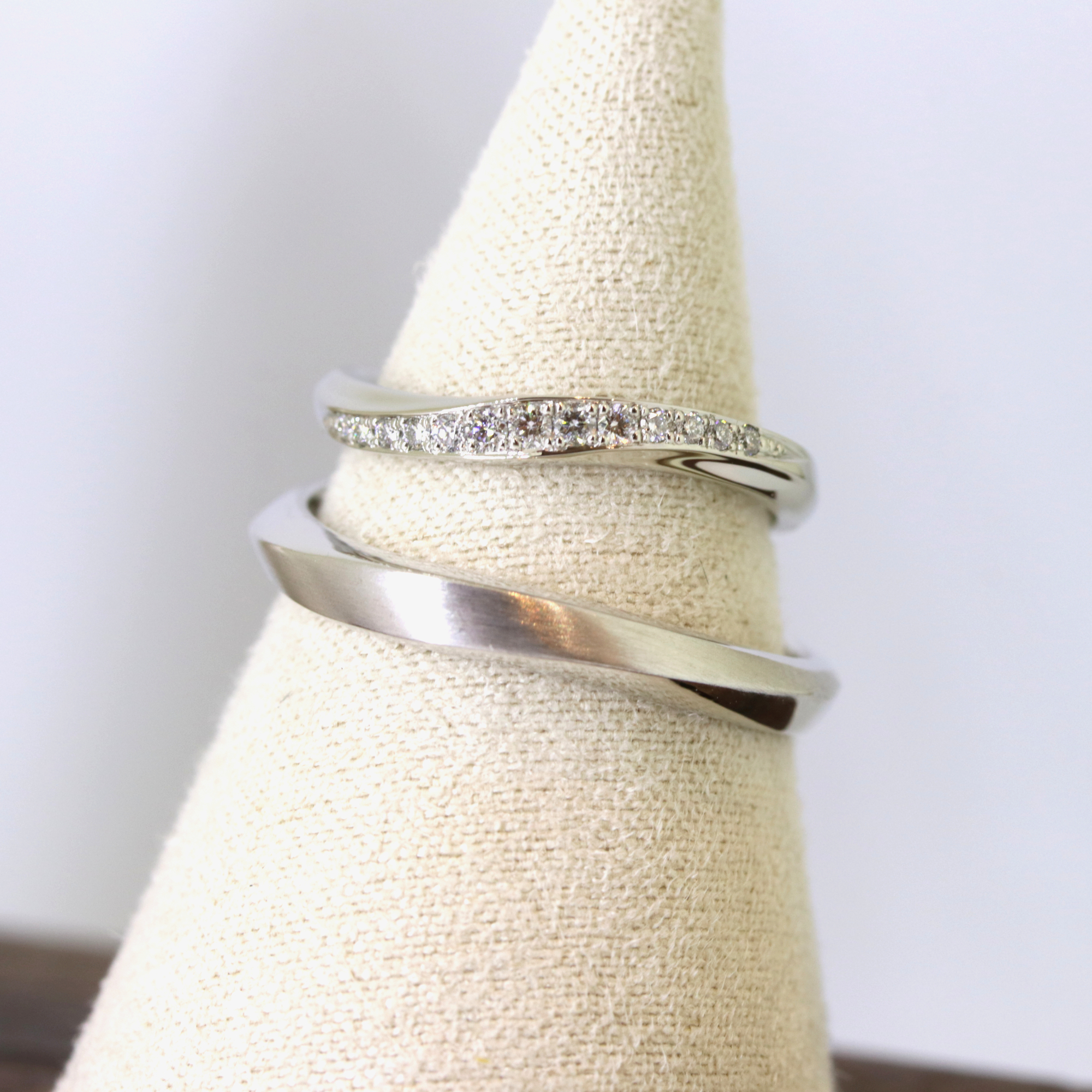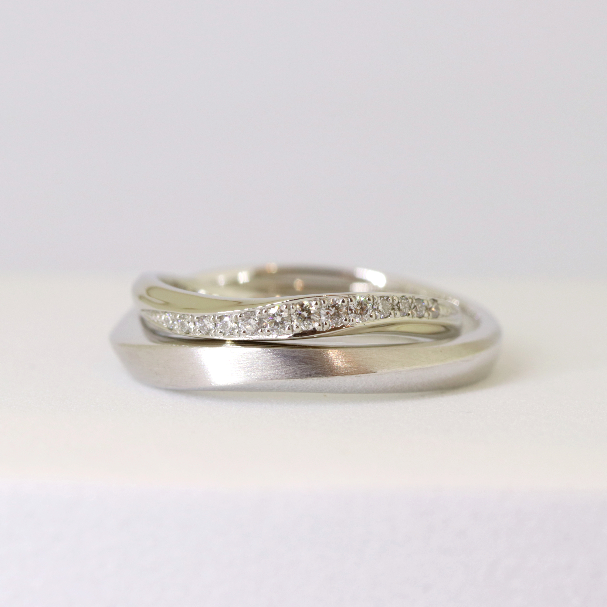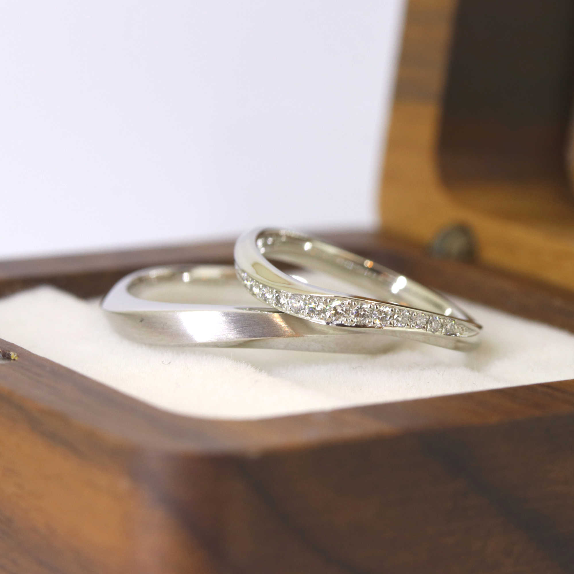 やわらかな輝きと流れるようなフォルムが、これから共に歩む時間を優しく包み込みます。