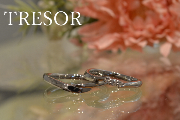 京都市 伏見区からご来店頂きました、 幸田様 結婚指輪(マリッジリング)の紹介。 【 PT 鍛造製 マリッジリング 】 緩やかなウェーブラインが指を綺麗に見せてくれるマリッジリング(結婚指輪)。女性用の指輪には贅沢に留められたダイヤモンドが留められ華やかに指元で輝いてくれます。鍛造で創られた指輪はとても頑丈で丈夫な金属になっています。TRESORではセミオーダーで選ばれた指輪を自…